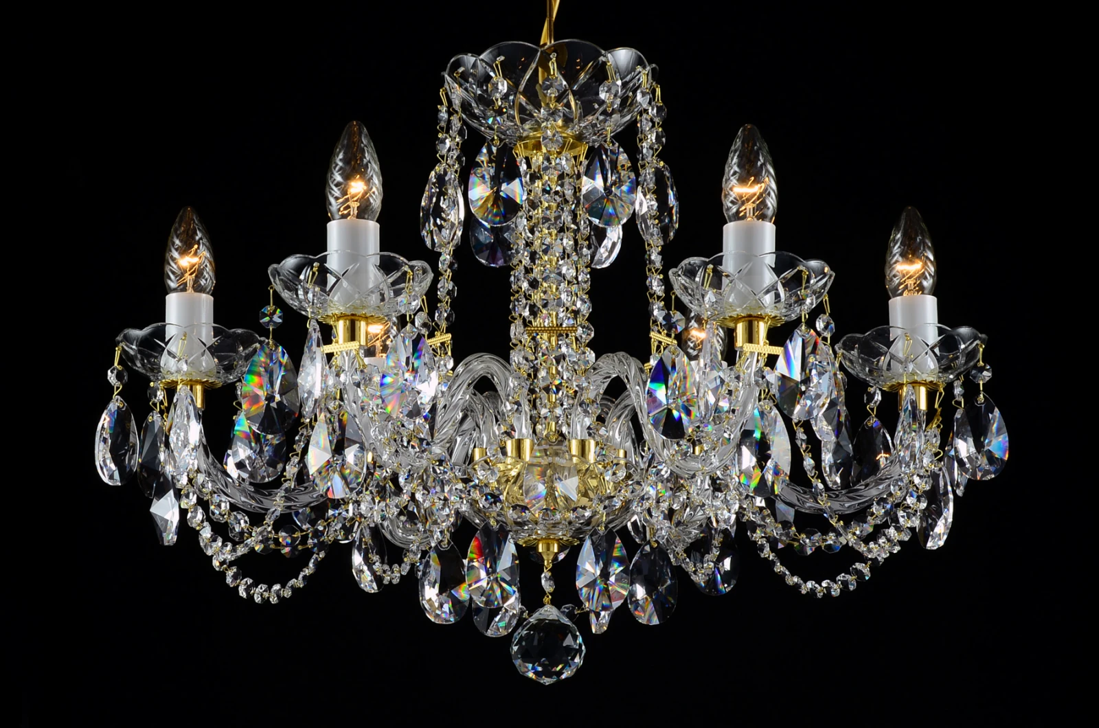 Люстра из бесцветного хрусталя с 6 лампами, которая украсит интерьер с низкими потолками. Верхняя и нижняя части люстры украшены хрустальными цепочками, которыми заменена и центральная часть. Использование множества цепочек из свинцового хрусталя гарантирует высокий блеск светильника. Люстру можно комбинировать с более крупными десятирожковыми или двенадцатирожковыми люстрами того же дизайна либо дополнить трехрожковыми хрустальными бра того же цвета.